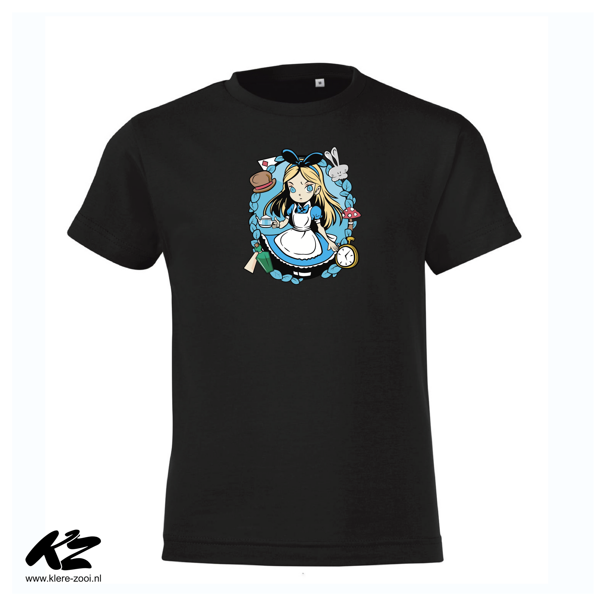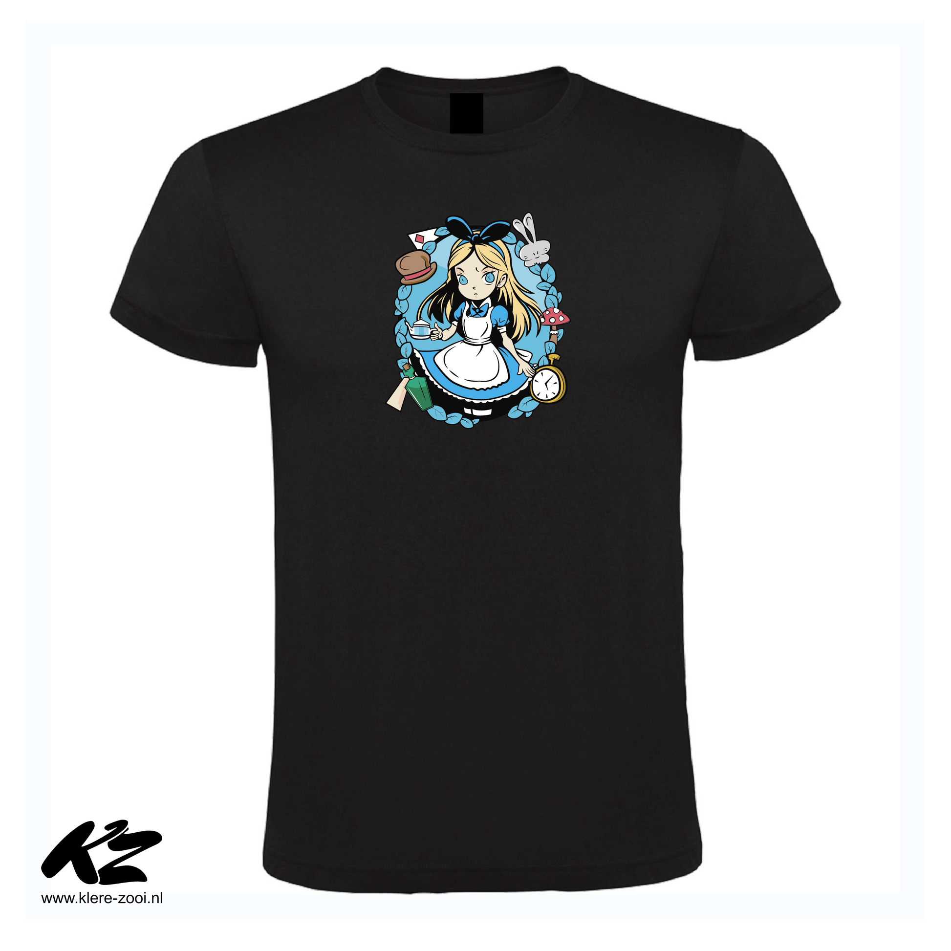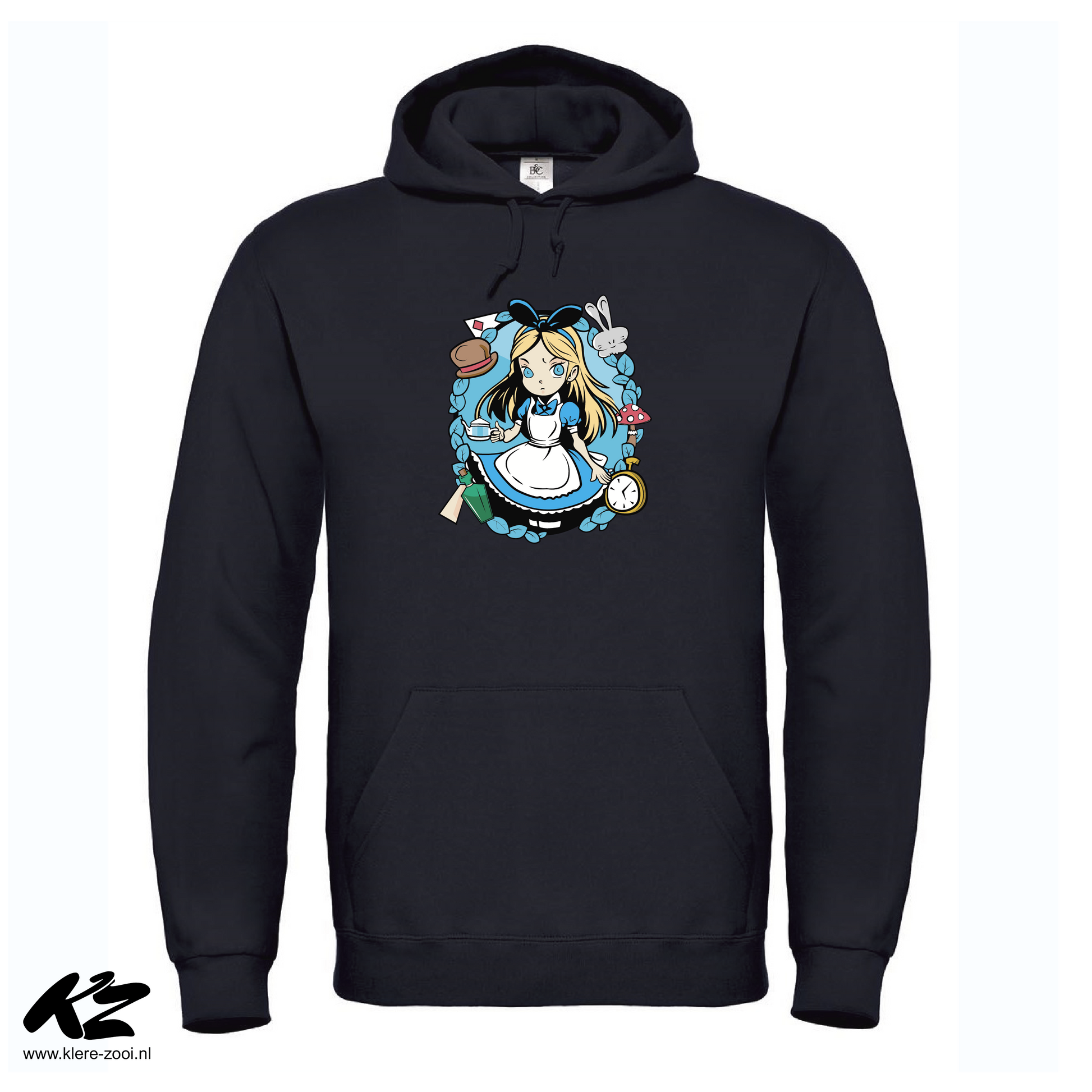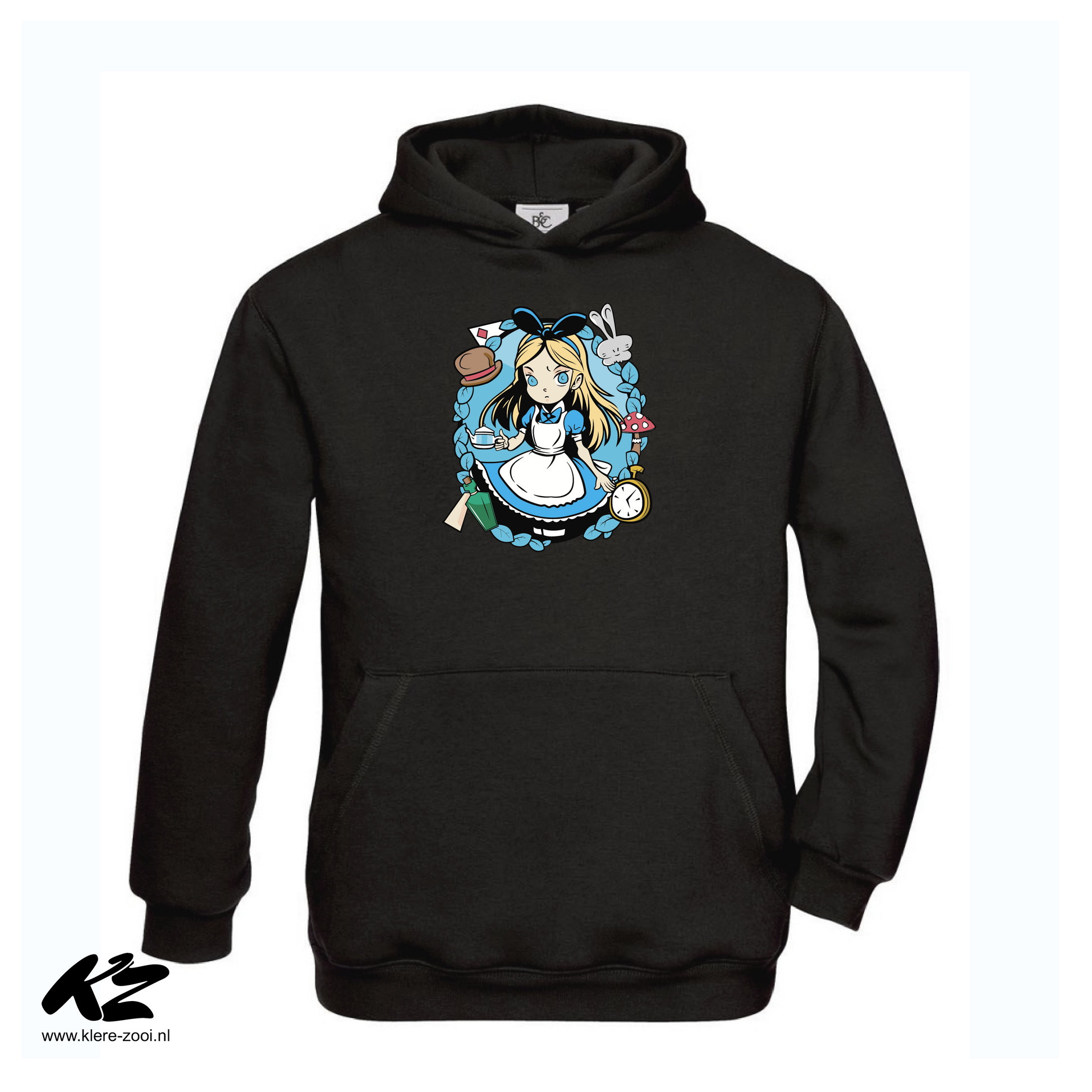 Zwarte hoodie of t-shirt met opdruk van Alice in Wonderland