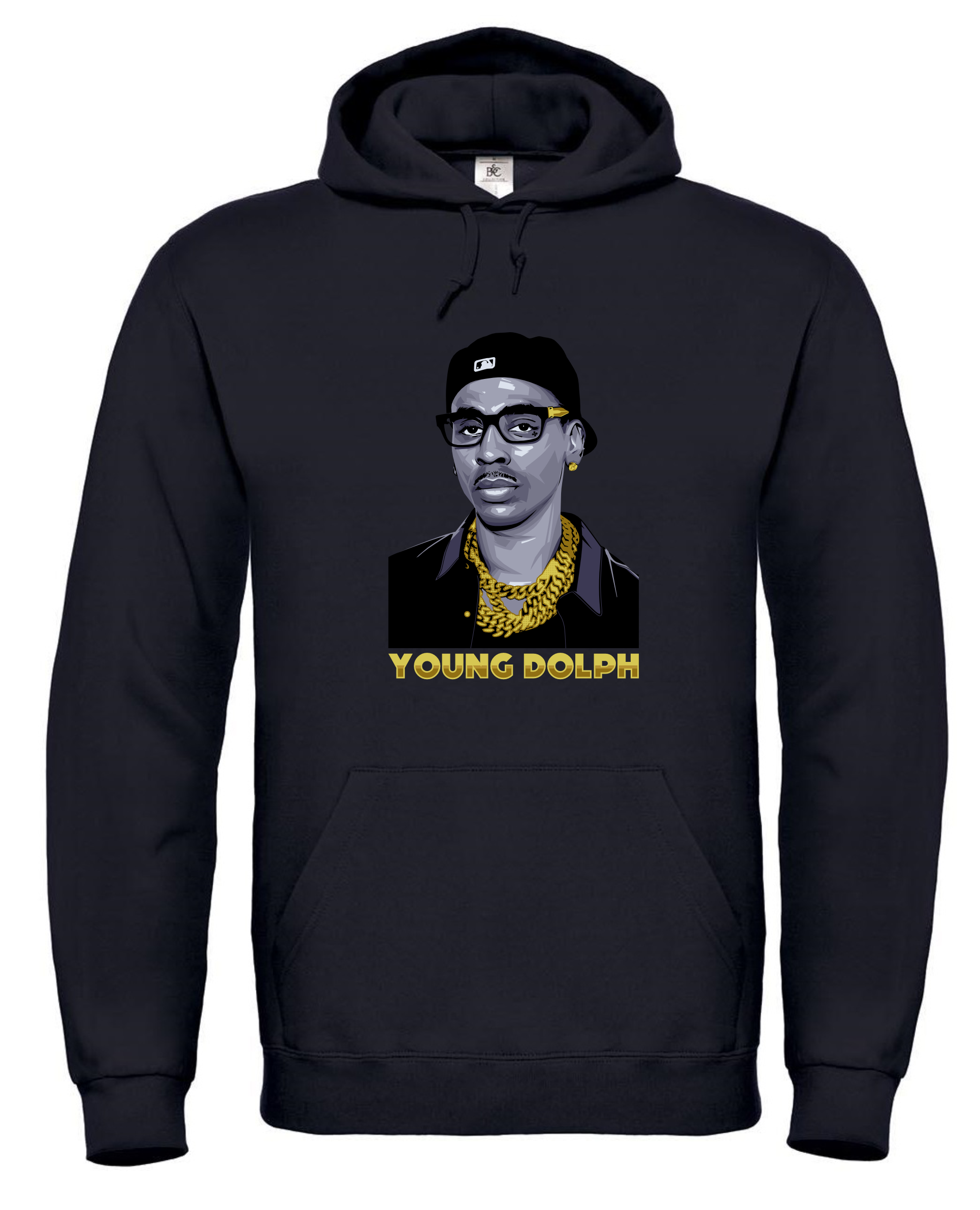 Zwarte hoodie of t-shirt met opdruk "Young Dolph"