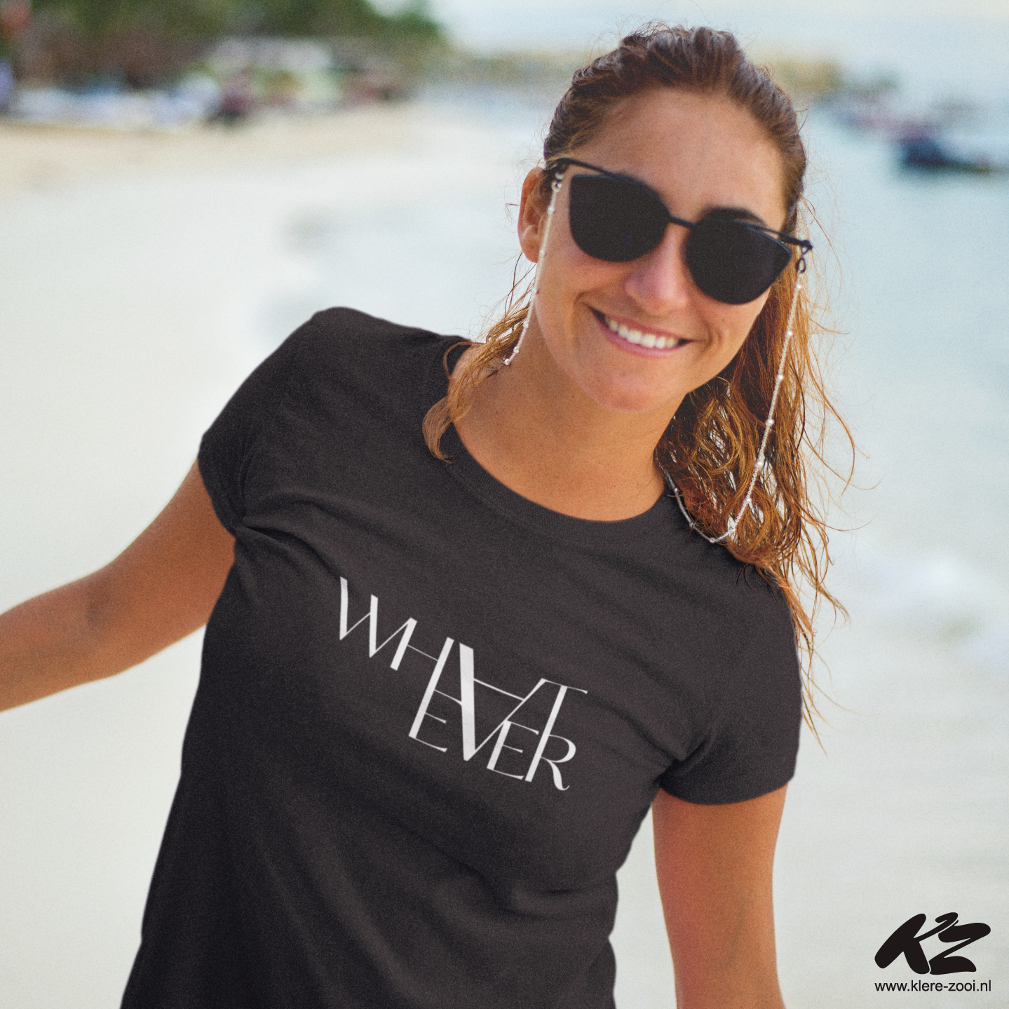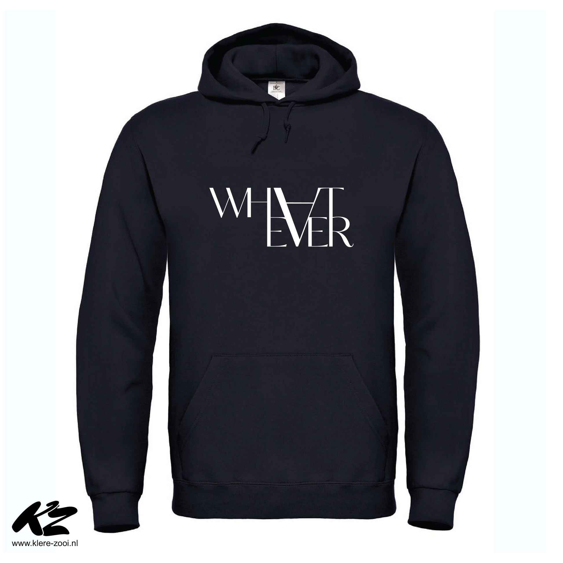Zwarte hoodie of t-shirt met opdruk "Whatever"